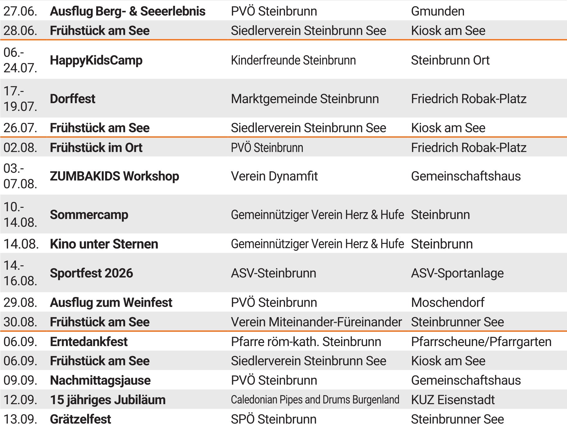 Veranstaltungskalender 2026