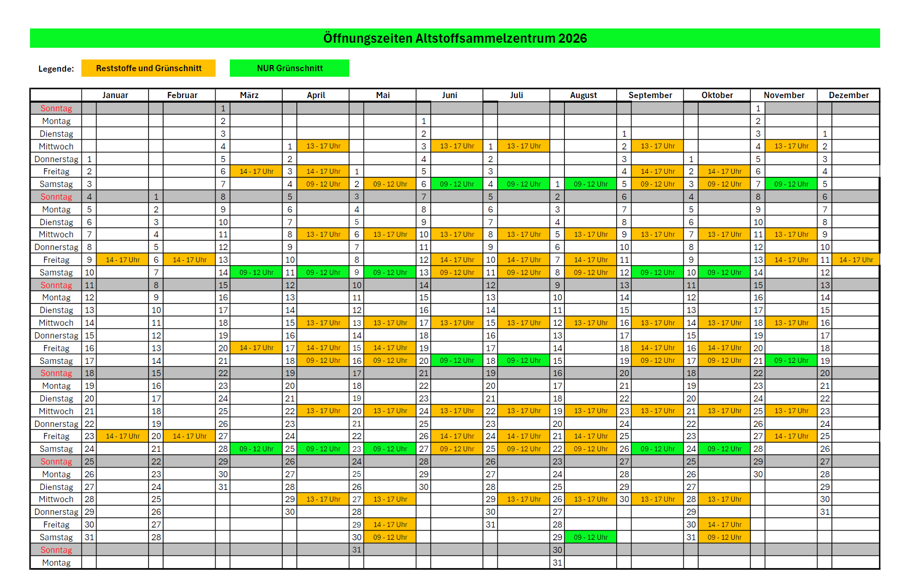 Öffnungszeiten Altstoffsammelzentrum 2026
